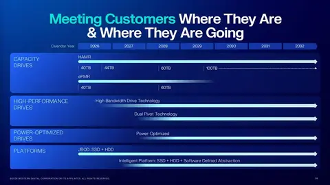 WD пообещала к 2029 году выпустить 100Тб жёсткие диски и увеличить скорость ввода/вывода данных HDD