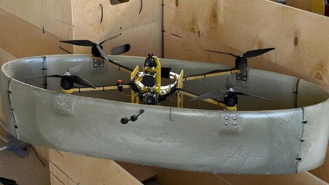 Аппарат сочетает вертикальный взлет с горизонтальным полетом. Гендиректор НПЦ «Ушкуйник» Алексей Чадаев выдал порцию патриотического техно-арта — снимки нового ударного дрона «Князь Владимир Святославович». Устройство совсем не похоже на привычный FPV-коптер или даже ударный беспилотник. В глаза бросается опоясывающая конструкция, которую разработчики называют овальное крыло. Она позволяет дрону совершать вертикальный взлет, а после набора высоты, переходит в горизонтальный полет.
