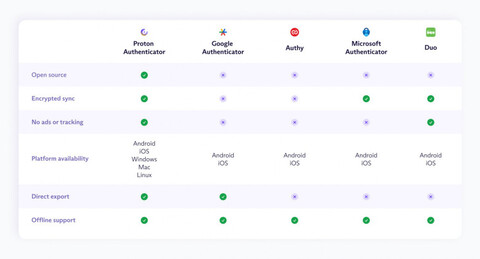 В конце июля 2025 года компания Proton, известная своими продуктами для повышения конфиденциальности, выпустила новое бесплатное приложение для двухфакторной аутентификации Proton Authenticator. Приложение с открытым исходным кодом доступно на iOS, Android, Windows, macOS и Linux.