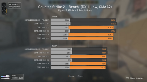 На YouTube-канале Ancient Gameplays продемонстрировали, как в современных играх показывают себя R7 9700X и 7900Х3D с DDR5 5600 vs 6000 vs 6200 vs 6400 МГц.