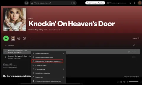 Теперь у пользователей появилась возможность более гибко управлять своим музыкальным профилем. Чтобы исключить композицию, достаточно нажать на меню с тремя точками рядом с названием трека и выбрать опцию Исключить из вашего профиля вкусовых предпочтений. Это действие не удалит песню из истории прослушиваний, но не позволит алгоритму учитывать ее при составлении будущих рекомендаций. При необходимости решение можно отменить, выбрав в том же меню пункт Включить в ваш профиль вкусовых предпочтений.