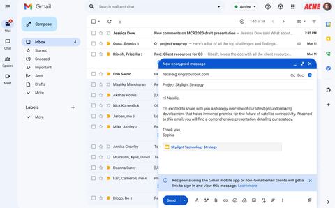 Пользователи, которым доступно клиентское шифрование (CSE) в Gmail в учётной записи Google Workspace Enterprise Plus с дополнением Assured Controls, теперь могут отправлять письма со сквозным шифрованием любому адресату.