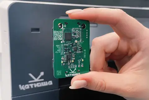 Первым модулем стал считыватель бесконтактных карт СК424 собственной разработки. Производитель пояснил, что он может устанавливаться как на этапе сборки устройств, так и в уже выпущенное оборудование (по желанию заказчика). Модуль полностью совместим с системой управления «Смарт Принт». «В РРПП был включен первый радиоэлектронный модуль от компании „Катюша” на отечественном текстолите – новый считыватель бесконтактных карт, и это только начало. К 2027 году планируем перевести электронные модули в наших устройствах на российский текстолит и увеличить долю российской ЭКБ. В абсолютных цифрах использование этого материала составит около 1 млн квадратных дециметров, или 400 тыс. плат в год», – отметил генеральный директор компании «Катюша» Максим Виноградов. Изображение: Катюша