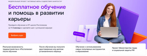 IT-школа «Ростелекома» открыла новый набор на бесплатные образовательные программы в рамках федерального проекта «Активные меры содействия занятости». Обучение начнётся 7 октября и продлится от одного до трёх месяцев. Курсы помогут быстро получить практические навыки, востребованные на рынке телекоммуникаций и IT.