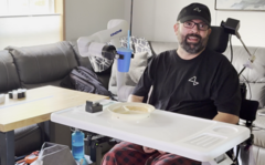 Пациент компании Neuralink Ник Врей, страдающий боковым амиотрофическим склерозом (БАС), продемонстрировал, как с помощью мозгового чипа управляет роботизированной рукой. В видео он направляет руку с чашкой к своему рту и даже делает глоток.