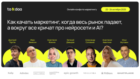 С 22 по 24 октября 2025 года состоится онлайн-конференция по маркетингу Ta-daa. На мероприятии, которое продлится три дня, 18 спикеров и маркетологи рынка РФ обсудят рост бизнеса в кризис и роль ИИ, а также расскажут, как строить маркетинг и развивать бизнес в условиях падения рынка, постоянного введения новых ограничений в интернете и стремительного развития нейросетей.