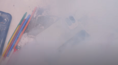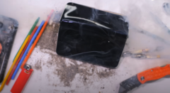 Но на этом испытание не закончилось — вскоре батарея смартфона задымилась и загорелась.