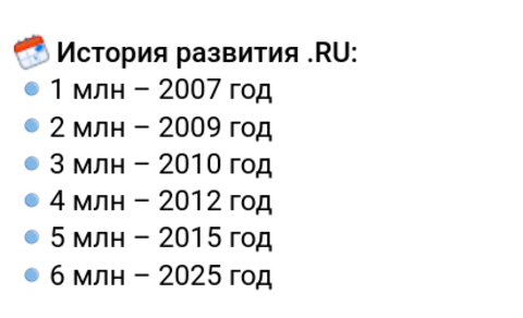 Координационный центр доменов .RU/.РФ сообщил, что 20 октября 2025 года в национальной зоне .RU зарегистрировано шестимиллионное доменное имя. Предыдущий рубеж в 5 млн доменных имён случился в домене .RU почти 10 лет назад, 5 ноября 2015 года.
