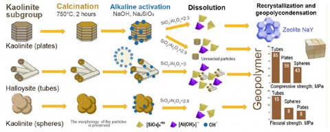 В новом исследовании учёные выяснили, как именно форма алюмосиликатных частиц, используемых для синтеза геополимеров, влияет на свойства получаемых материалов. Авторы работы сравнили три варианта образцов: нанотрубки, частицы пластинчатой и сферической формы.