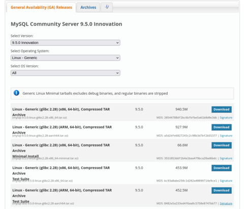 Во второй половине октября 2025 года Oracle выпустила СУБД MySQL 9.5.0 (ветка Innovation). Разработчики проекта подготовили и выложили в открытый доступ сборки MySQL Community Server 9.5.0 для основных дистрибутивов Linux, FreeBSD, macOS и Windows. Релиз СУБД MySQL 9.4.0 состоялся в июле 2025 года.