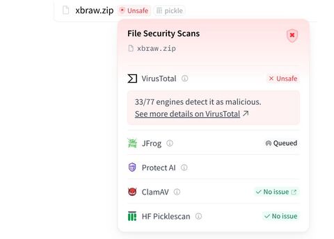 Новая функция помогает оценить потенциальные риски в файлах моделей, наборах данных и связанных артефактах ещё до их загрузки. Любые небезопасные файлы, обнаруженные VirusTotal, будут содержать ссылку на общедоступный отчёт с подробной информацией.