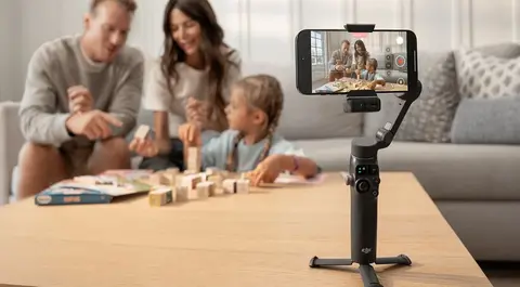 Устройство получило 3-осевую систему стабилизации и возможность панорамирования на 360 градусов без ограничений, что позволяет снимать плавные панорамы и видео с круговым обзором. Инженеры также встроили телескопический удлинитель для съёмки с низких ракурсов и интегрированный модуль отслеживания с регулируемой подсветкой и функцией записи звука.