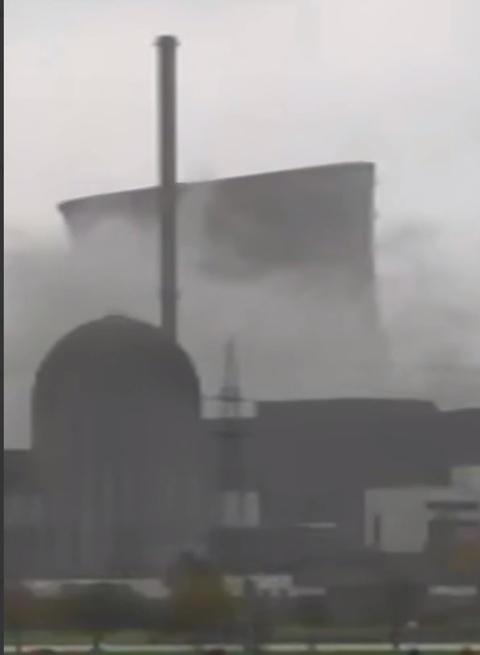 На крупнейшей атомной электростанции Германии в Гундреммингене произошёл управляемый взрыв, в результате которого были разрушены обе градирни высотой 160 метров. Об этом сообщает немецкий Telegram-канал NiUS.