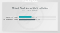 В большинстве бенчмарков MacBook Pro на М5 был медленнее, чем на М4 Pro. С результатами вы можете ознакомиться на графиках ниже.