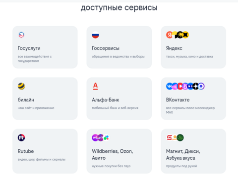 сервисы «ВКонтакте», «Oдноклассники», Mail.ru и национальный мессенджер Max;