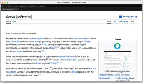 Состоялся второй выпуск открытого проекта браузерного движка Servo. Решение написано на языке программирования Rust и опубликовано на GitHub под лицензиями Mozilla Public License 2.0 и BSD 3-Clause License.