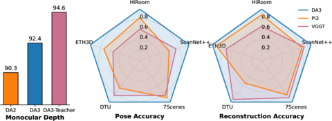 В тестах DA3 превосходит предыдущие версии по точности и устойчивости, обеспечивая улучшенное качество 3D-визуализации для приложений в AR/VR, дизайне и робототехнике.