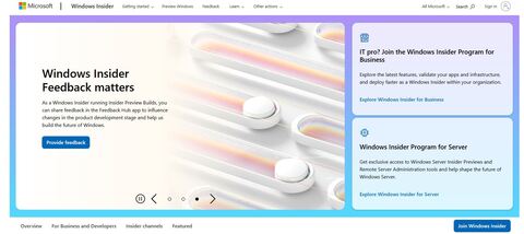Так, веб-сайт использует новейший язык дизайна Microsoft с красочными фонами, градиентами и значками. Там появилось множество быстрых ссылок, позволяющих зарегистрироваться в программе, ознакомиться с её вариантами (Windows Insider for Business и Windows Server Insider), просмотреть документацию, получить доступ к загрузкам и ознакомиться с обзором доступных каналов. Теперь на сайте чётко объясняется, чего ожидать от каждого канала и для кого он предназначен. Кроме того, есть быстрые ссылки на заметки о выпуске последней сборки в каждом канале.