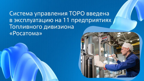 Система управления техническим обслуживанием и ремонтом оборудования (ТОРО) введена в промышленную эксплуатацию на всех ключевых производственных предприятиях. Решение разработано специалистами цифрового блока АО «ТВЭЛ» и внедрено в 11 крупных предприятиях в несколько этапов начиная с 2020 года.
