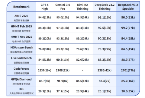DeepSeek-V3.2-Speciale является улучшенной версией V3.2, включающей возможности глубокого мышления и выполнение доказательств математических теорем из DeepSeek-Math-V2. Бенчмарки AIME, HMMT, GPQA и ряд других показывают, что эта модель отличается улучшенными способностями в логическом выводе, математических доказательствах и следовании инструкциям, достигая производительности, сопоставимой с Gemini 3.0 Pro в тестах логического вывода. Модель V3.2-Speciale успешно завоевала золотые медали на олимпиадах по математике, программированию и информатике IMO 2025, CMO 2025, ICPC World Finals 2025 и IOI 2025.