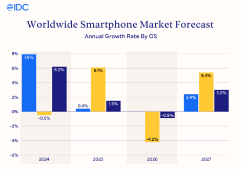 Ожидается, что поставки Apple в 2025 году увеличатся на 6,1%, что значительно выше предыдущего прогноза в 3,9%. IDC прогнозирует, что поставки Apple превысят 247 миллионов устройств благодаря высокому спросу, в частности, на серию iPhone 17. В Китае, крупнейшем рынке для Apple, высокий спрос привел к росту прогноза поставок компании в четвертом квартале с 9% до 17% в годовом исчислении, превратив общий прогнозируемый спад рынка Китая в 2025 году в рост на 3%. Однако прогноз на 2026 год был скорректирован в сторону понижения: вместо роста на 1,2% ожидается спад на 0,9%. Основными причинами названы дефицит комплектующих и корректировки цикла выпуска продуктов. Стратегический перенос выпуска следующей базовой модели iPhone с осени 2026 года на начало 2027 года, как ожидается, снизит поставки устройств на 4,2% в следующем году.