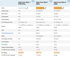 Такой рост объясняется конфигурацией. Ultra 7 270K Plus получил 24 ядра (8 P-ядер + 16 E-ядер) вместо 20 ядер у 265K, а также увеличенный объем кэша — фактически процессор приблизился по характеристикам к Core Ultra 9 285K.
