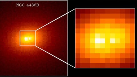 Наконец, выяснилось, почему у загадочной маленькой галактики в центре одна сверхмассивная черная дыра, но при этом сдвоенное ядро.