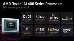 Всего базовый модельный ряд Ryzen AI 400 получил семь моделей, где две относятся к старшим и содержат 12 ядер(4*Zen5+8*Zen5c)/24 потока, а более младшие решения обходятся конфигурациями 10/20, 8/16, 6/12 и 4/8: