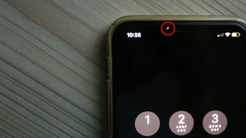 На самом деле это всего лишь то датчик приближения или proximity sensor. Когда вы разговариваете по телефону, то он реагирует на приближение аппарата к уху и экран гаснет. Таким образом, исключаются случайные нажатия во время звонка. Датчик срабатывает не только, когда мы подносим его к голове: его можно закрыть, например, пальцем и экран все равно погаснет.