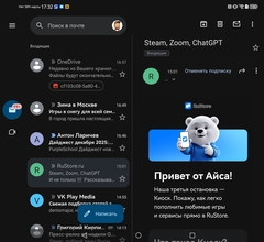 Большинство стандартных приложений отлично адаптированы под внутренний экран. Например, клиенты почты и мессенджеры могут работать в две колонки. А ещё тут удобно пользоваться многооконным режимом.