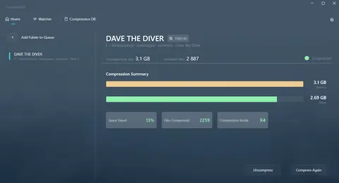 Помимо экономии места, использование CompactGUI может положительно сказаться на производительности компьютеров с медленными HDD. Поскольку процессору часто легче быстро распаковать данные, чем ожидать считывания большого объема информации с диска, время загрузки уровней может сократиться. Программа предоставляет наглядную статистику процесса, позволяет выбирать степень сжатия и умеет автоматически обрабатывать папки в фоновом режиме после выхода обновлений для игр в Steam. Также в утилиту встроена база данных с результатами тестов сообщества, помогающая оценить потенциальную выгоду перед началом операции.