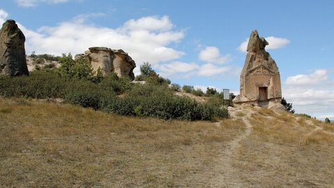 Монумент Арслан Кая расположен в западной части современной Турции, в Фригийских нагорьях, недалеко от озера Эмре Гелю. Этот 2600-летний памятник вырезан в вулканической скале высотой около 15 метров. Его украшают фигуры сфинксов, изображение богини в окружении львов и почти полностью стертая надпись на древнефригийском языке.