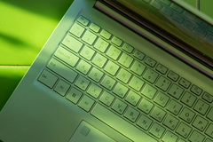 А вот клавиатура, хоть и напоминает с виду какие-нибудь… не знаю, HP Pavilion? Но прям тактильно дешёвая. Нет, основание у неё не прогибается, клавиши срабатывают, подсветка работает и более-нормальная по интенсивности, просто… ну, вы печатали когда-нибудь на дешёвой компьютерной клавиатуре? Это вот чуть «люфтящие» мягкие клавиши с не особо чётким срабатыванием и ощущение, что ну вот сэкономили на ней явно.