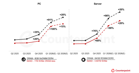 На рынке компьютерных комплектующих наблюдается значительное изменение цен. Согласно свежим данным аналитиков из Counterpoint, в первом квартале 2026 года стоимость памяти выросла на 80%-90% по сравнению с концом прошлого года. Этот скачок затронул практически все сегменты: от стандартной оперативной памяти DRAM до накопителей NAND и специализированных модулей HBM.