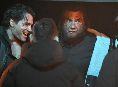 В ходе ночных съёмок были отсняты напряжённые эпизоды противостояния героев. Кавилл, облачённый в кожаную куртку и камуфляжные брюки, появился в кадре с искусственно нанесёнными ссадинами и кровоподтёками. Его противник, Батиста, предстал в образе зловещего клирика — переосмысленной версии персонажа Кургана. Оба исполнителя работали со сложным тросовым оборудованием, разыгрывая схватку над автомобилем, в то время как их коллега Шиван Каллен проносилась мимо на мотоцикле.