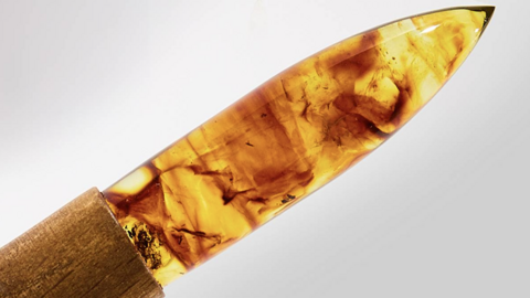 «Технологи создали внутри заготовок для пули особый рисунок, комбинируя янтарь различных оттенков и меняя параметры прессования», — добавили в пресс-службе.