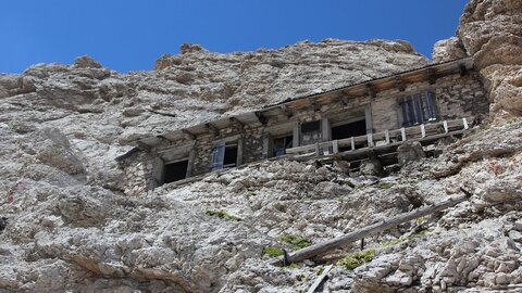 Этот дом возвели во время Первой мировой войны. Современный туристический маршрут в итальянских Альпах проходит через исторические места ожесточенных битв между итальянскими и австро-венгерскими войсками. Во время конфликта обе стороны использовали различные тактики, включая взрывы снежных покровов, вызывающих сходы лавин. При этом на экстремальных высотах строились укрепления, склады боеприпасов и наблюдательные пункты.
