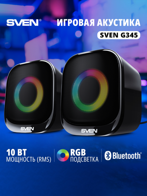 Компания SVEN представила новую модель настольной акустики формата 2.0 — G345. Габариты каждой колонки составляют 75×94×72 мм. Корпус выполнен в чёрном цвете и оснащён динамической RGB-подсветкой, которую при желании можно отключить. Внутри установлены 47-миллиметровые драйверы, которые обеспечивают воспроизведение в широком частотном диапазоне. Производитель заявляет о сбалансированном и насыщенном звучании, подходящем для повседневного использования. Общая выходная мощность системы — 10 Вт (по 5 Вт на канал). Этого достаточно для просмотра видео, прослушивания музыки и озвучивания игр при работе за компьютером. Питание и передача сигнала организованы через один USB-кабель, что упрощает подключение к ноутбуку или ПК. Также поддерживается Bluetooth для беспроводной передачи звука со смартфонов и планшетов.