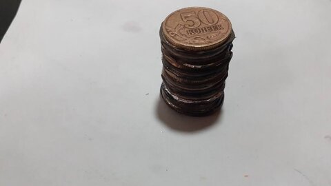 Монеты для нашего эксперимента должны быть медными или, как минимум, должны содержать большой процент меди. Для этого подойдут медно-никелевые монеты номиналом 1, 2 и 5 рублей образцов до 2008 года включительно, а также латунные монеты номиналом 50 копеек образца до 2006 года (латунь на 80% состоит из меди).