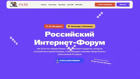 С 27 по 29 апреля 2026 года в Технопарке «Сколково» состоится главное отраслевое событие — Российский Интернет Форум. Участников ждут три дня интенсивной программы, посвященные разным аспектам коммуникаций, а также выставки, нетворкинг и праздничные мероприятия в честь юбилея.