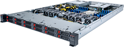 Устройство выполнено в форм-факторе 1U с габаритами 438,5 × 43 × 770 мм. Допускается установка одного процессора в исполнении Socket SP5 с показателем TDP до 500 Вт. Доступны 24 слота для модулей оперативной памяти DDR5-5200 RDIMM/RIMM-3DS. Во фронтальной части расположены 12 отсеков для SFF-накопителей U.2 с интерфейсом PCIe 5.0 x4 (NVMe); возможна горячая замена. Кроме того, есть два внутренних коннектора для SSD типоразмера М.2 2280/22110 (PCIe 3.0 x2).