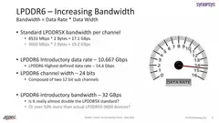 Согласно предварительной информации, частота LPDDR6 начинается с 10667Мгц(или Мбит/с). Кроме того, ширина шины новой ОЗУ сразу на 50% больше нежели у LPDDR5X, что обеспечивает прирост возможностей в одноканальном режиме и резкий прирост производительности в двухканальном.