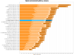 Не очень много, казалось бы, но всё равно автономность выше среднего (LTPO дисплей с гибкой герцовкой решает), а какой-нибудь Oppo Reno15 без LTPO, как видите, даже с 6500 мАч работает почти столько же. Или iQOO Neo 10 с 7000 мАч, но более прожорливым процессором, тоже работает лишь на 10% дольше. Хотя, казалось бы — между 5750 мАч и 7000 мАч пропасть. Но тут как в автоспорте — быстрее не всегда тот, у которого двигатель мощнее. А тот, у которого при средней мощности автомобиль гораздо легче.