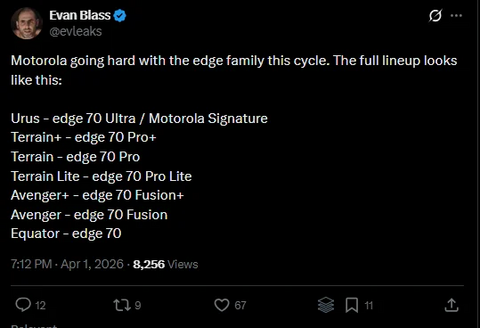 Согласно утечке от инсайдера Эвана Бласса, компания добавит в ассортимент как минимум три новых варианта: Edge 70 Pro, Edge 70 Pro+ и Edge 70 Pro Lite, сообщает портал Gizmochina. Внутри компании они имеют кодовые названия Terrain, Terrain+ и Terrain Lite. Таким образом, линейка становится более разнообразной, охватывая разные ценовые сегменты. На данный момент семейство Edge 70 уже включает стандартную модель Edge 70, а также Edge 70 Fusion, Edge 70 Fusion+ и более дорогую версию Motorola Signature. Новые модели расширят линейку и позволят Motorola ориентироваться на разные ценовые категории, от бюджетных устройств до более продвинутых. Впрочем, такое обилие моделей может как помочь покупателю с выбором, так и запутать его, в зависимости от того, насколько четко будут разнесены характеристики и цены.