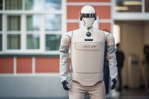 Антропоморфный робот-курьер Аркус предназначен для быстрой и дешевой доставки продуктов от даркстора до постамата или потребителя.