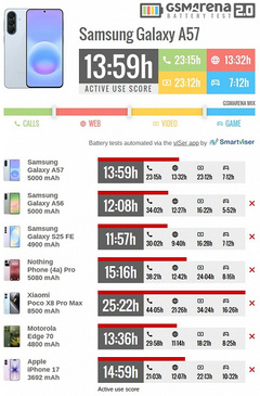 Авторы GSM Arena опубликовали обзор смартфона Samsung Galaxy A57. Напомним, он получил новую платформу, при этом аккумулятор у него всё ещё обычный (5000 мАч).