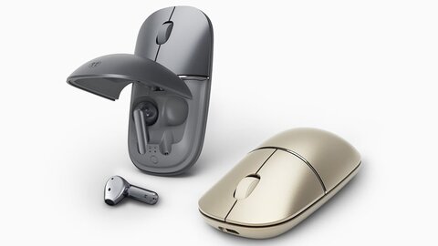 Устройство представляет собой стандартную беспроводную мышь для работы за ноутбуком или компьютером, которой хватит на 30 дней активного использования. Но в ее задней части спрятан отсек с полноценным кейсом для TWS-наушников. Они подходят для прослушивания музыки, поддерживают активное шумоподавление ANC, а их конструкция лишена силиконовых насадок.