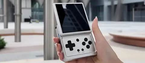 Главная особенность RG Rotate — поворотно-выдвижной экран, в сложенном виде консоль выглядит как плоский квадратный блок без видимых кнопок, а после сдвига дисплея вверх открывается полноценный блок управления: крестовина, несколько круглых кнопок и, судя по кадрам, дополнительные элементы. В отличие от многих современных портативок, сюда не стали встраивать аналоговые стики, что может ограничить совместимость с играми, где требуется точное управление камерой. На задней панели расположены плечевые кнопки L1, R1, а также L2 и R2. Последние можно регулировать по высоте — видимо, с помощью сменных накладок.