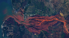На снимке река кажется кроваво-красной, напоминая артерии или сосуды в сетчатке глаза. Этот яркий оттенок обусловлен высоким содержанием железистых осадков, которые река переносит к побережью. Осадки накапливаются из-за интенсивной эрозии почвы, вызванной массовой вырубкой лесов в регионе. В течение последнего столетия, согласно данным NASA, леса Мадагаскара подверглись значительным разрушениям, что привело к уязвимости почвы перед тропическими ливнями и штормами.
