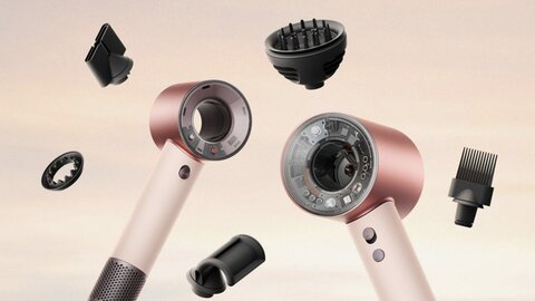 Еще одна особенность новинки — совместимость с уже существующими насадками от Dyson Supersonic. Фен поставляется со сменными насадками, включая базовую укладочную.